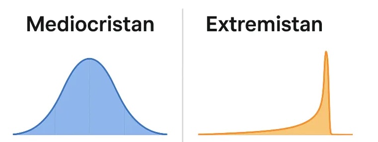 | Aussi proche de l’égalité utopiste que la réalité le permet | Dominé par une inégalité extrême, de type “le gagnant rafle tout” |